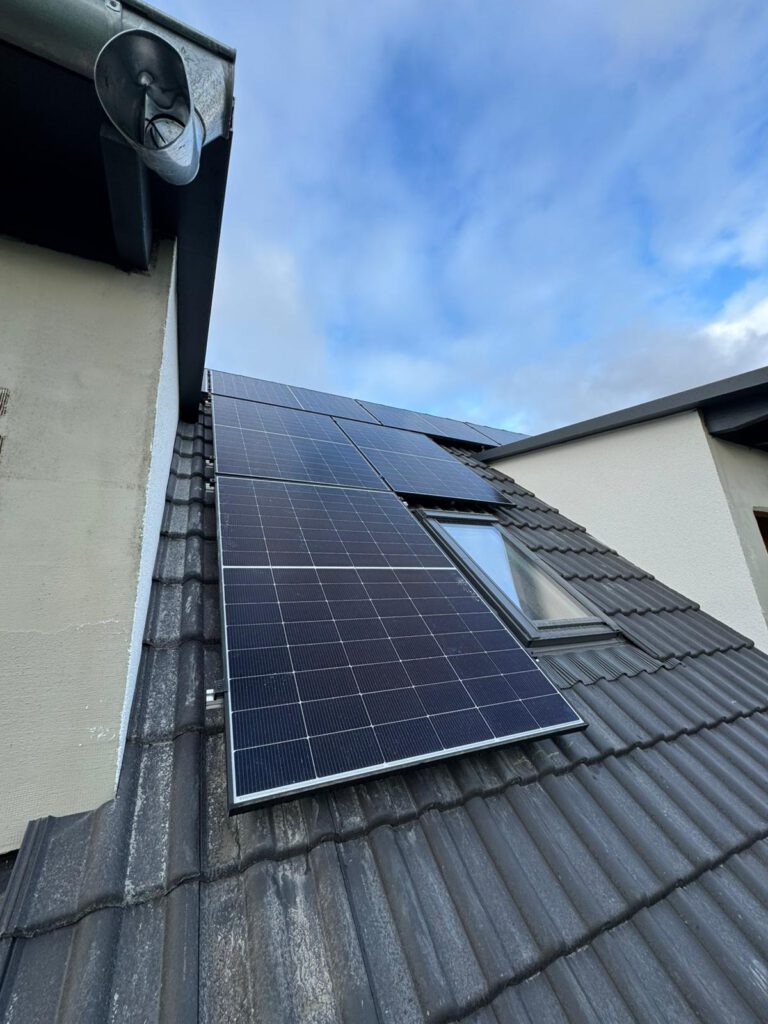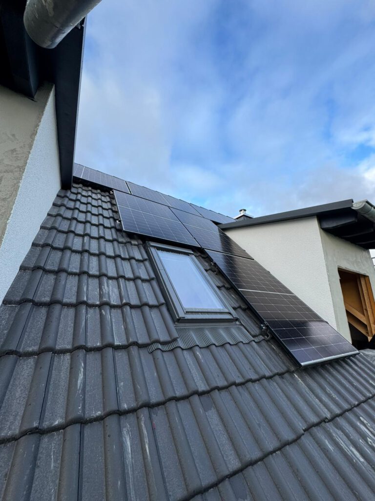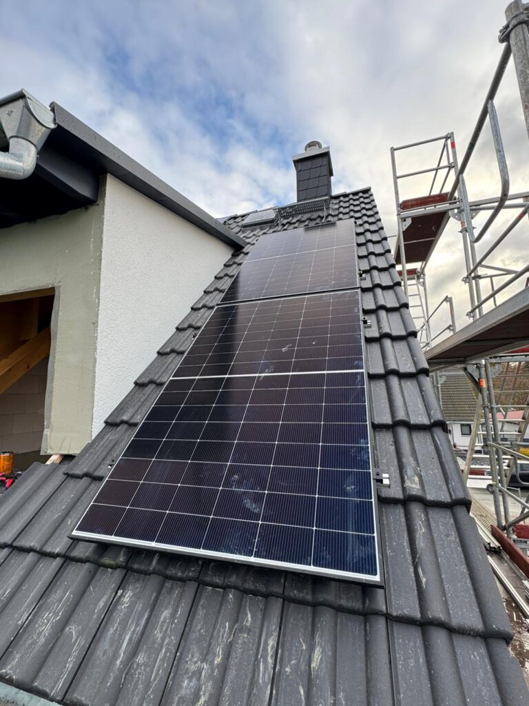 Die Modulen wurden so montiert, dass der Schornsteinfeger auch weiterhin guten Zugang zum Dach hat. Ansonsten war die Aufgabenstellung möglichst viele Module auf dem Dach zu montieren.