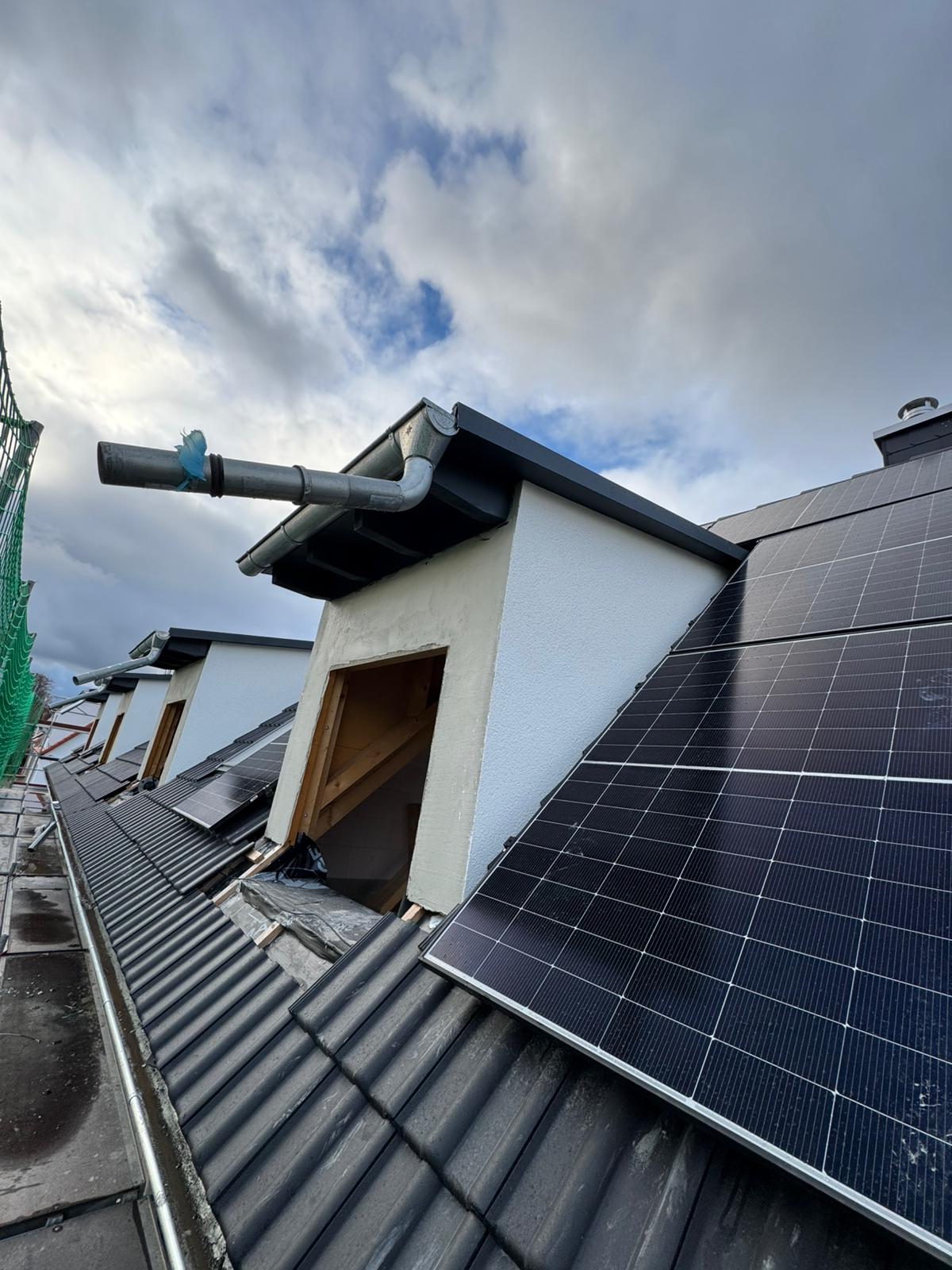 • Kabeldurchführung: Die AC-Leitung vom Wechselrichter führten wir unter den Dachziegeln bis zur Traufe (Dachrand), wie auf dem Bild zu sehen. Dies sorgt für eine optisch unauffällige und witterungsgeschützte Verlegung.