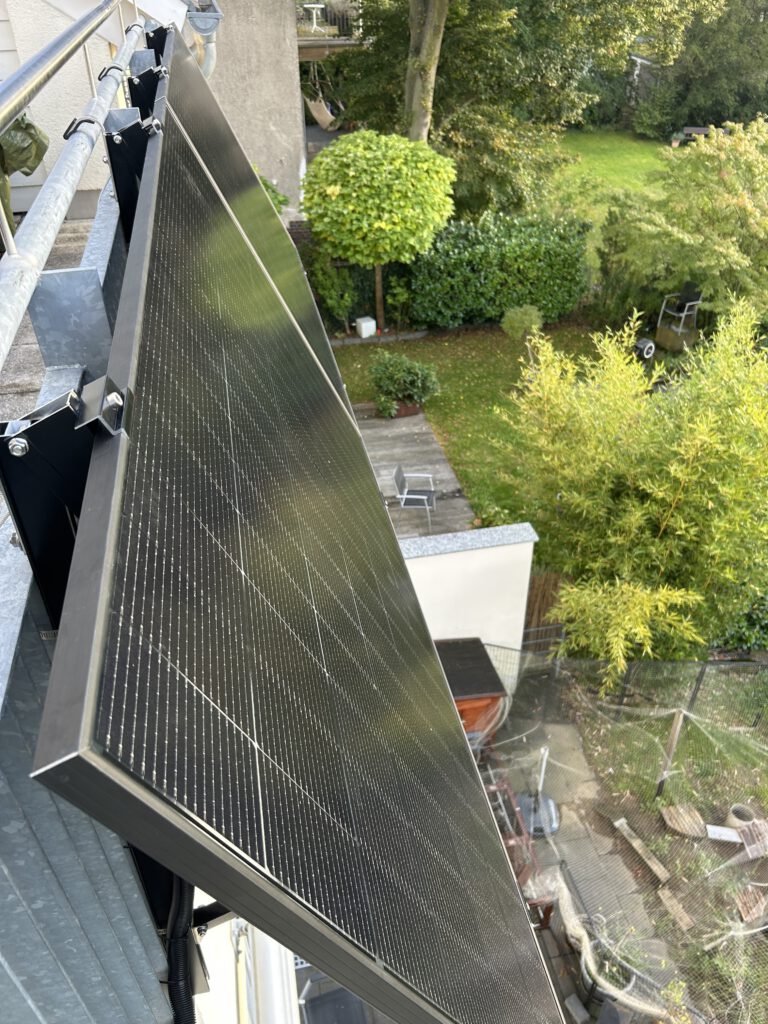 - Senkrechte Montage (90°): Bei engen Balkonen oder Gittergeländern wird oft senkrecht montiert. Dies liefert einen guten Ertrag in den Morgen- und Abendstunden und ist unauffällig.